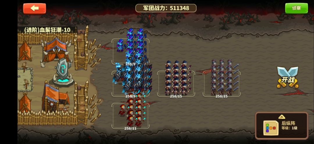 一定要注意亡骑放中间最后面,这点挺关键的。骑兵不一定要放前面,有的时候放后面有奇效