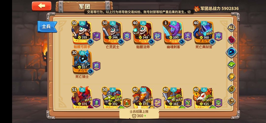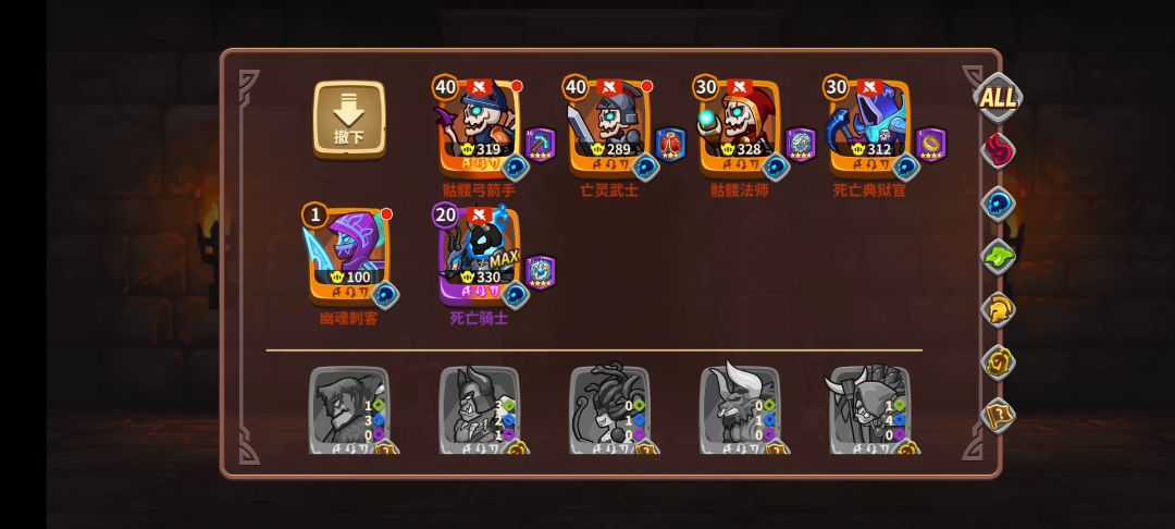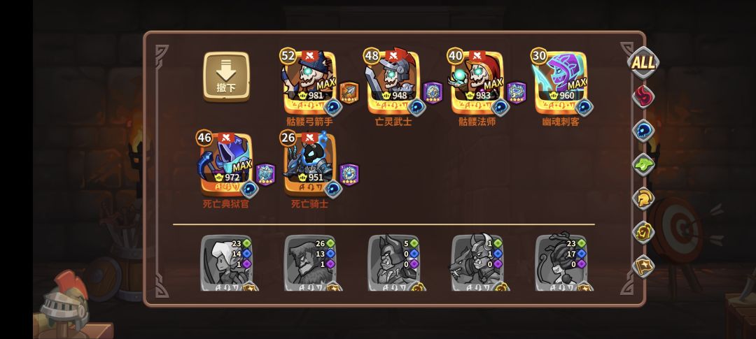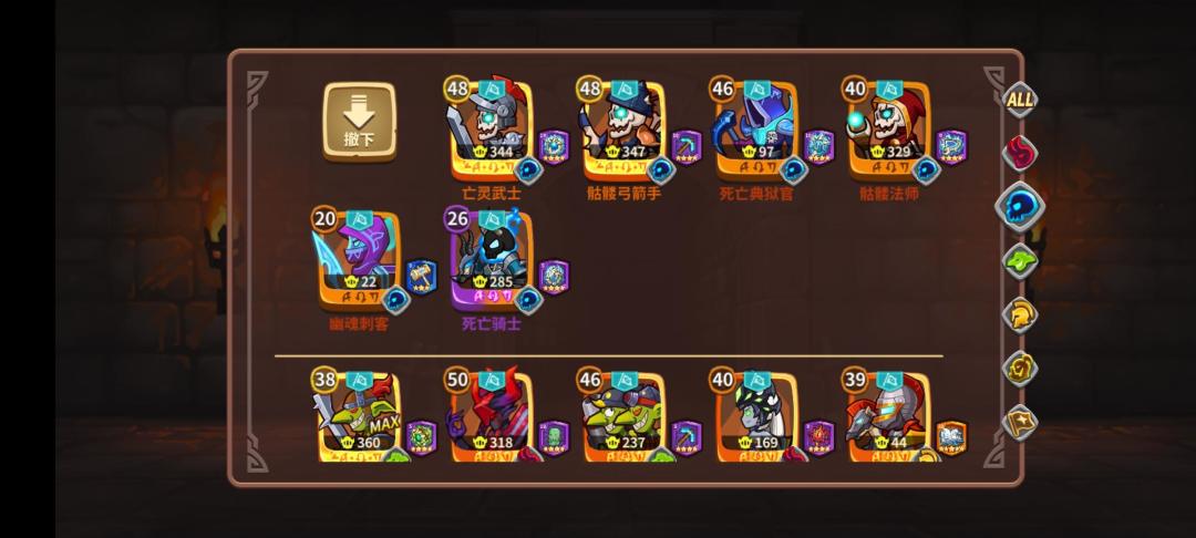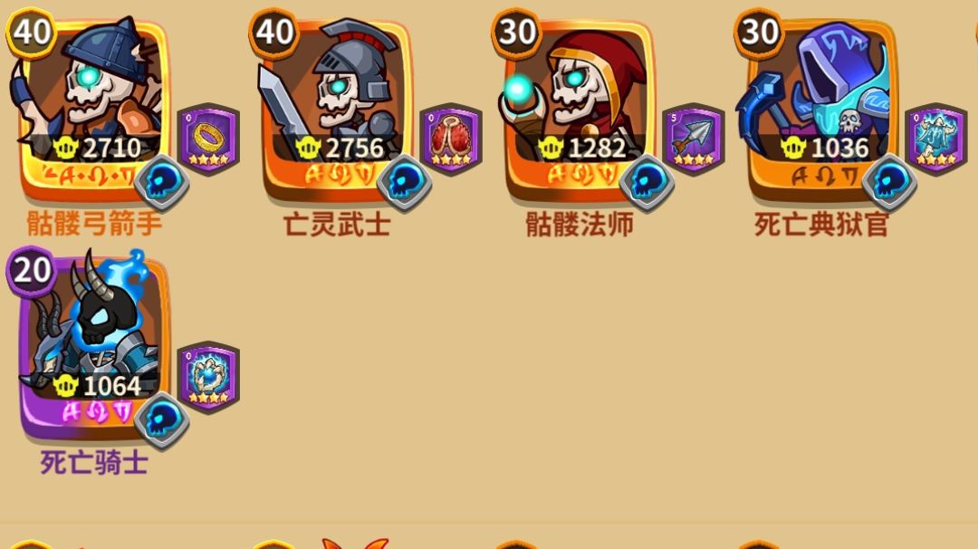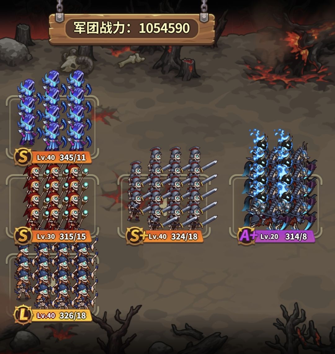 有亡灵套,死灵骑等级不能太高,20级就行,亡灵弓和亡战的武器加到40级,亡灵弓等级才35级,因为没有经验和钱了,审判官等级高一点(30级就行),装备加血量的,避免最后被哥布林boss切死,没办法秒杀丝血被boss,导致翻车。#攻略#游戏讨论