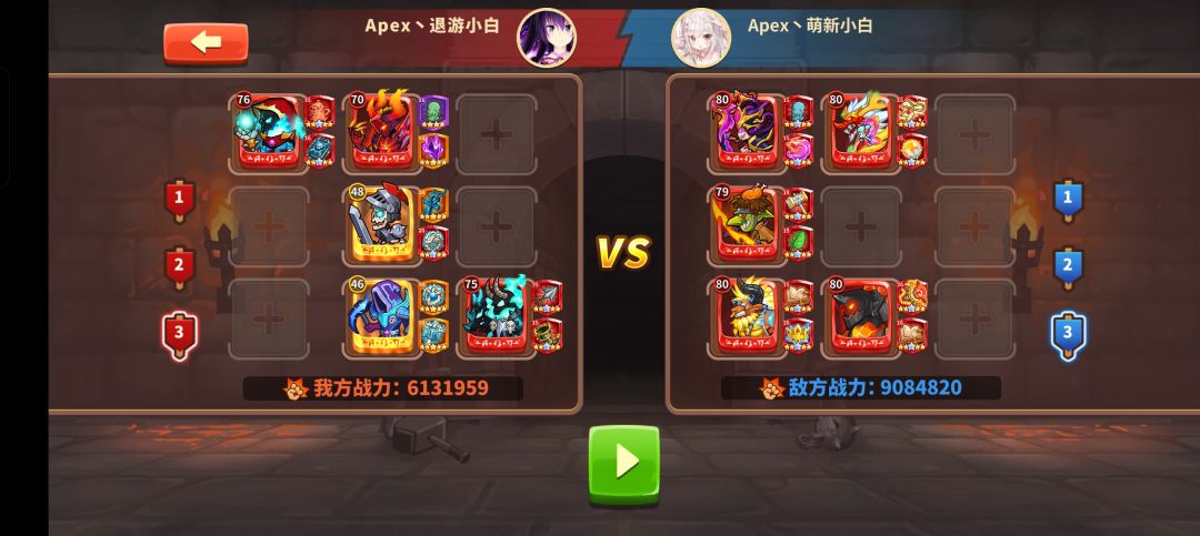 阵容:后T阵,影魔剑魔50级,顽魔劣魔40级,蛛魔30级。(剑魔蛛魔还是S级,平民无误)