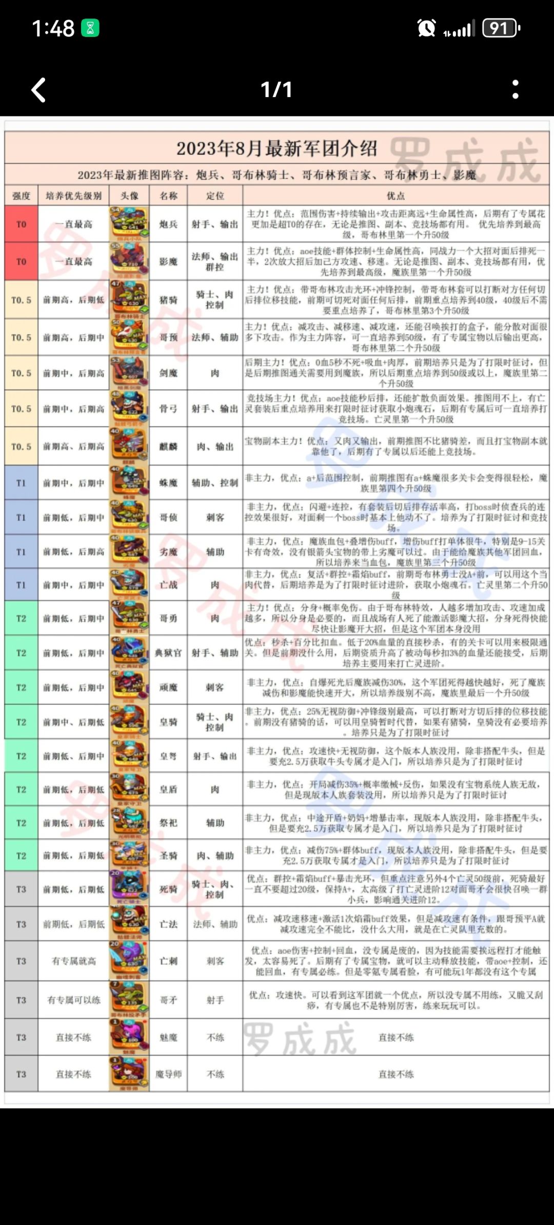 新手攻略新玩家填邀请码:ewmgqq(名额有限先到先得),领取1000氪金!! 结尾附兑换码 新手开局推图思路影魔+哥布林炮手+哥布林骑士+哥布林预言家+哥布林勇士 军团优点:1.哥布林骑士:有控制,而且前期对后排杀伤力很强,A+后自带攻击光环,有哥布林骑士前期推图很顺。 2.哥布林炮手:范围伤害,输出高,游戏里最重要的输出军团,必须重点培养的。 3.影魔:全图控制+全图输出+血厚,搭配哥布林人数
