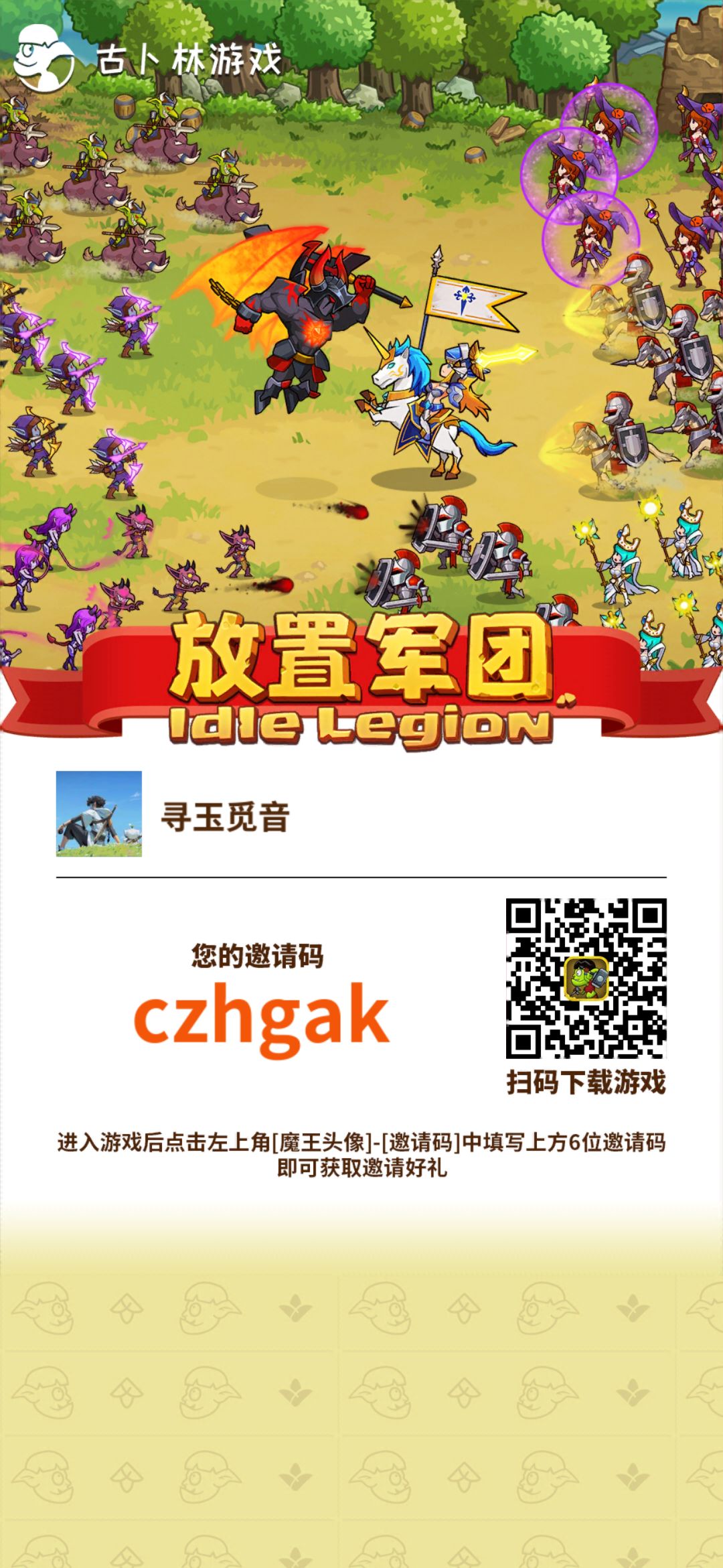 一、开局 第一件事情,领新手礼包 如果方便可以填一下邀请码(我这边也可以获得一些奖励你有什么不懂也可以游戏里随时问我) 邀请码:czvgdv 领1000氪金, 开局24小时内才能填 新手的第一次十连抽为三选一卡池,可以在三个A级军团中任选其一!推荐小伙伴刷哥布林骑士 ,炮兵或影魔开局,刷图神器,自己懒得刷可以tb花钱让别人帮刷 选择优先级为哥布林骑士,炮兵小队,暗黑影魔。前期初始军团强烈