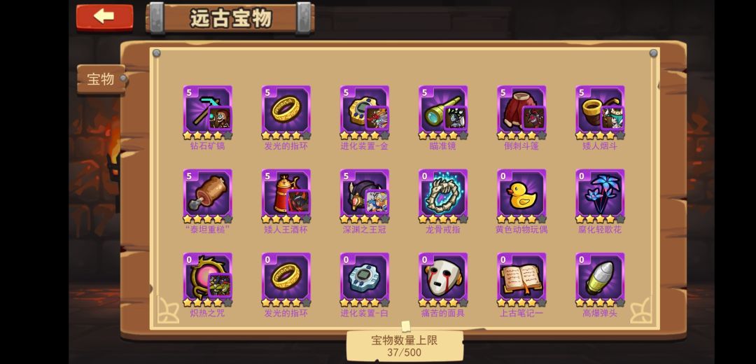 邀请码: cvygmw 首先在宝物抽奖页面你是可以看到不同种类的宝物有不同星级。按照图里的宝物分布情况,我按照宝物稀有程度分成了sabc四个档次。然后从c档开始挨个跟大家聊一聊每个档次可用的宝物。每一个档次里,低星可用的高星当然是更好。 c档次: 倒刺斗篷:唯一可用,因本游戏反伤过程算攻击一次。反伤可以触发类似狂战的8%血量附加效果,伤害远远高于反甲那点星级带来的比例提升。 至于其他的为啥都是乐色