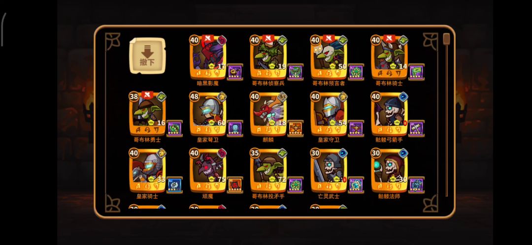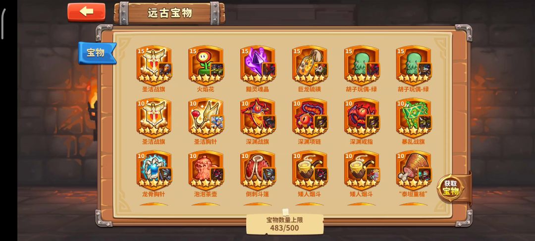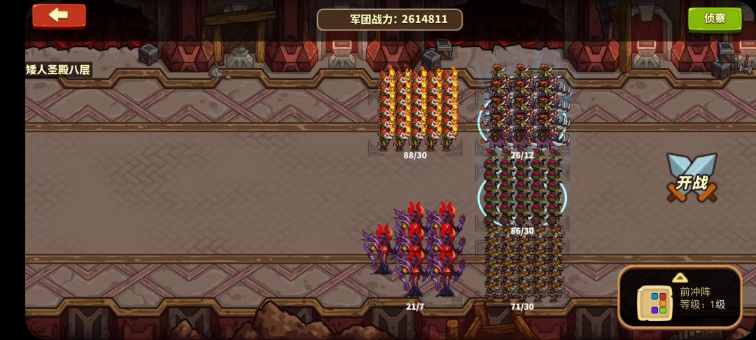 这一套阵容大家都能凑出来吧,两稀有兵种剑魔蛛魔还是S级,宝物只需单孔,宝物最高也才10级,没有什么三暗伤加成、三火抗词条等要求。