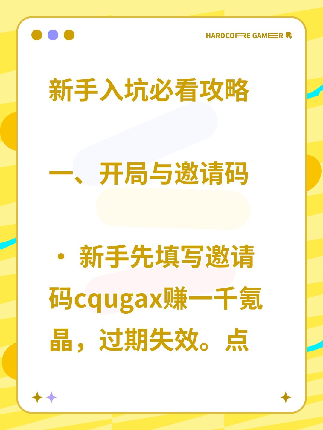 新手入坑必看攻略 一、开局与邀请码 • 新手先填写邀请码cvegee一千氪晶,过期失效。点击头像旁邀请码复制粘贴,还可到填写者家园刷魔晶。 • 开局三选一,必刷哥布林炮或哥布林猪骑,猪骑最稀有,重置账号刷取。 二、游戏心态与氪金建议 • 保持平常心,勿盲目氪金。 • 氪金需谨慎,活动力度大时可考虑,一般五千拿小专属,两万五拿大专属。 三、阵容与培养 • 阵容选择国家队:哥