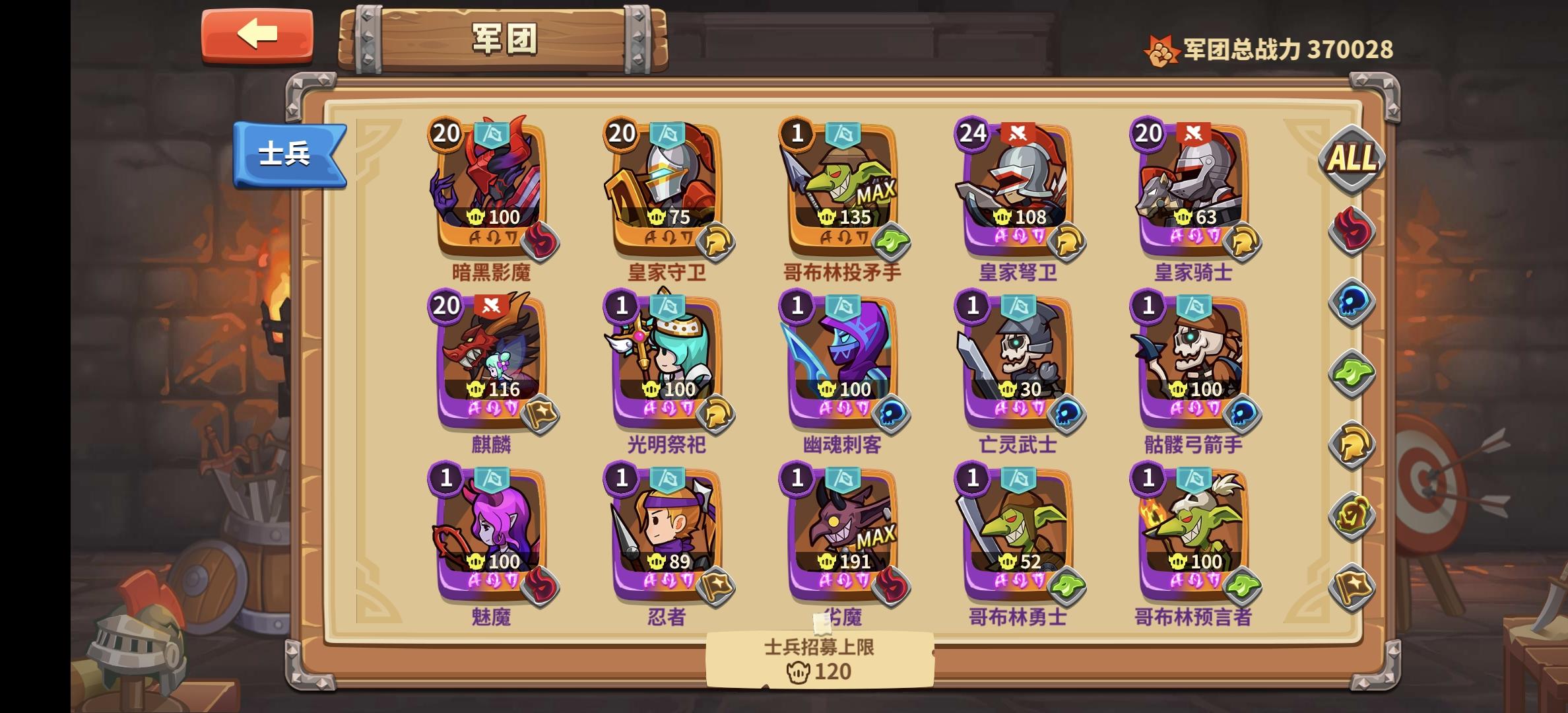 新玩家填邀请码:erggtn 领取1000氪金!! 新手开局推图思路 影魔+哥布林炮手+哥布林骑士+哥布林预言家+哥布林勇士 军团优点: 1.哥布林骑士:有控制,而且前期对后排杀伤力很强,A+后自带攻击光环,有哥布林骑士前期推图很顺。 2.哥布林炮手:范围伤害,输出高,游戏里最重要的输出军团,必须重点培养的。 3.影魔:全图控制+全图输出+血厚,搭配哥布林人数多更容易放大招,无论是推图
