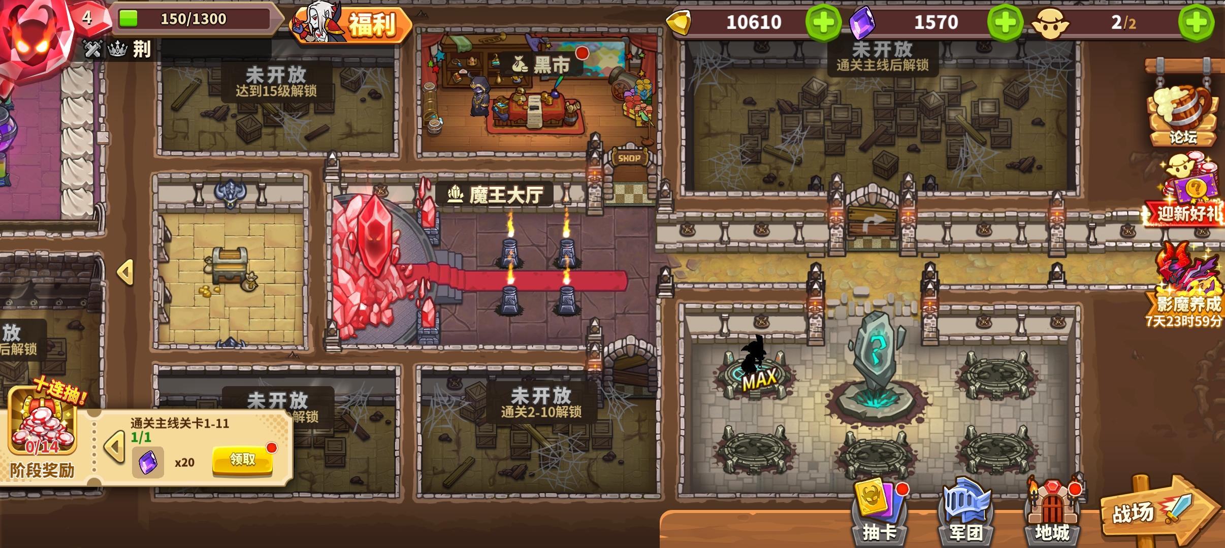 一、开局 第一件事情,领新手礼包 如果方便可以填一下邀请码(我这边也可以获得一些奖,谢谢) 邀请码:edmgae 领1000氪金, 开局24小时内才能填 新手的第一次十连抽为三选一卡池,可以在三个A级军团中任选其一!推荐小伙伴刷哥布林骑士 ,炮兵或影魔开局,刷图神器,自己懒得刷可以tb花钱让别人帮刷 选择优先级为哥布林骑士,炮兵小队,暗黑影魔。前期初始军团强烈推荐哥布林骑士,也就是我们俗