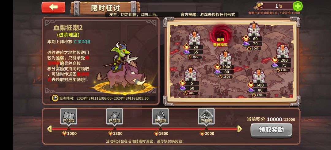精灵带指环,只要在牛头人的技能之下存活就有很大概率通关12。