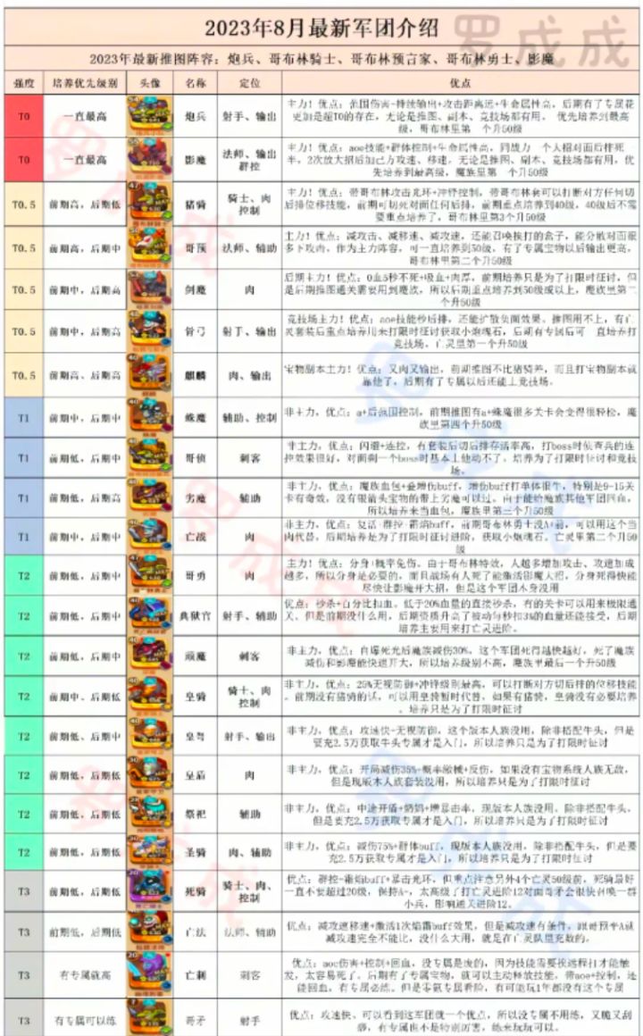 选择优先级为哥布林骑士,炮兵小队,暗黑影魔。前期初始军团强