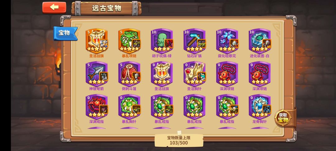 把存的10抽宝物抽了想搏个剑魔专属,没搏到,结果存仓库里一个5星蒙尘开出来了,属实有些节目效果,再加上这局打的...只能说这关等级低了没剑魔专属是过不去的,我抄作业拆家去加装备等级都不行,影魔、哥炮、剑魔(商店里的哥预专用来加攻速不知道是不是必须)专属少了一个都不行...