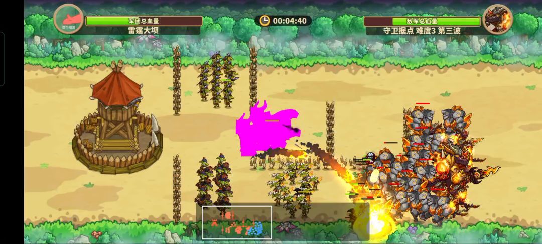 8-1卡了很久,两队忍者直接把后排切掉很难处理,开始的想法是用影魔和和预,影魔大招吸引所有的忍者配合和预把忍者秒掉,后来发现伤害不够,而且忍者会跳到哥预后面将其秒掉。后排被秒,直接崩了。 后来换了思路,用T字阵,哥骑顶在最前面吸引对面守卫和弩卫的火力先拖时间,后面用劣魔报影魔,劣魔和影魔一定要放在一起,劣魔死了才会炸到忍者,两边放顽魔和哥侦,把跳过来的忍者秒掉,杀了忍者之后刚好哥骑死完,就好打对面的守卫和弩卫了。 感觉52万战力已经差不多是极限了(除非套装),也有运气成分。