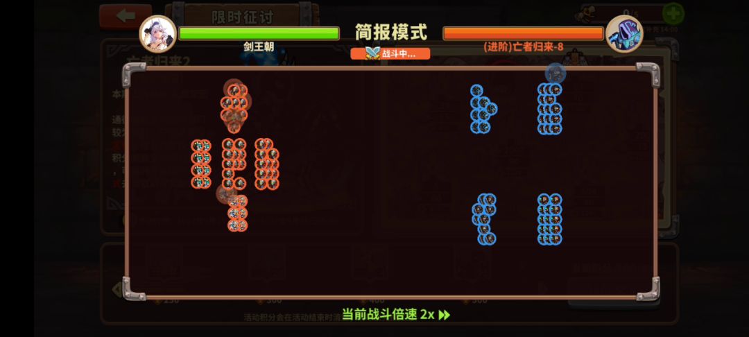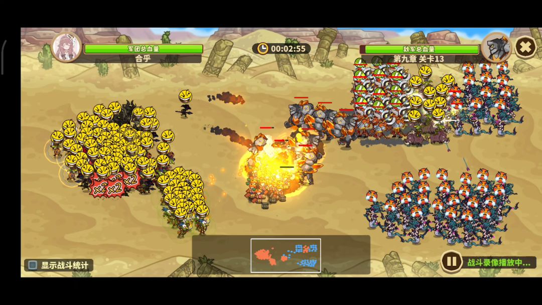 其实摆的个人感觉还不是很好,奈何对位双骑兵实在是没有很好的布阵空间 里面的小技巧还是老一套,哥勇保哥炮以及所有后排,自己卡自己是一个很不错的技巧,一个一个上去能浪费对方的输出,同时很容易给后排打出不错的阵型。先骑兵突进去不求换多少后排,主要目的是聚怪方便后来的输出。还会让他的前排兵被吸引到法师后面,给后面的卡怪造成了客观条件上的支持。 这把的运气因素主要是在于对面盾骑卡位置了,第二波冲锋和防反晚了点,后排输出环境更好了。不过按照我这么摆,确实容易卡,也可以说是技巧也可以说是bug吧