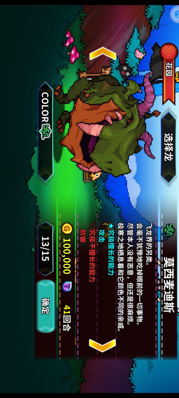 推荐这只长颈龙,只要签到就能领,有手就行。基础配置挂机刷满,不用拿宝藏,萌新谁都可以做到。技能也是签到送,没难度;花点小钱就能在满级商店买。龙杖(我带熬夜)让黑商给,萌新运气超好的。思路:逆鳞觉得危时开,直接反杀;传说一击是输出技能,有就用,最好卡点;清除波自己判断;遇到怪物开龙杖晕住,用传说轰死,尤其是回血怪,拖时间;实在没办法还是有一定的抗压能力,拖到效果结束马上反杀回去。打大型直接