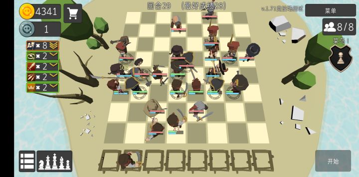 你不合二级对面就没有二级,合二级反而死的快打完一回合进竞技场投降出来可以刷新棋子和广告,退出游戏重进也可以刷新没打完的情况用以上两个方法可以回到战斗前,让你苟一回合换下站位和棋子(猎人天下第一,因为近战容易卡bug逛街)