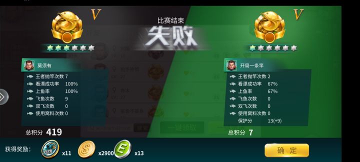 吐槽一下匹配赛机制,首先匹配的两个人战力相差甚远,地图老是陌生水域没有鱼种熟练度,无论是比星还是比鱼的稀有程度都是输的一塌糊涂,还有就如有人说的那样对方得分不合理,比如分级只有1,2,4 ,6分,对方秒得7分,不可能一下子钓1+2+4分,或6+1分,最终也没见对方双飞6+1分