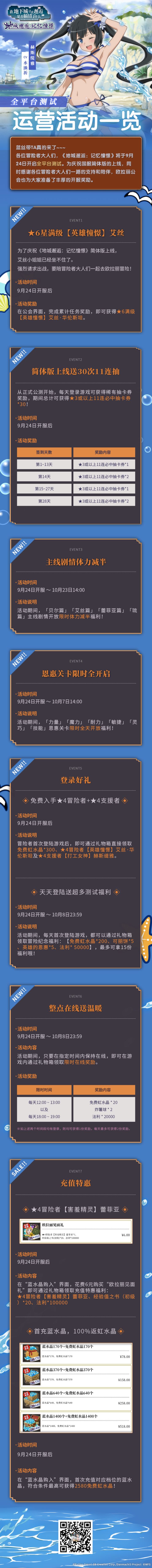 各位冒险者们久等了喵~9月24日即将开启全平台测试!昨天正式公布了全平台测试国服版本内容。国服的首个公测版本,将会开放“港街泳装纪行”、“英雄祝宴”、“阿妮雅可萝侦探社”等6个卡池,同时也会开放对应卡池的“英雄试炼”、“大冒险谭”活动。并且,将在9月23日提前开放APP预下载,9月24日8点开服。以上这些关键信息,各位冒险者们都记下了吗?还可以点击传送门查看【国服公测版本内容】详情