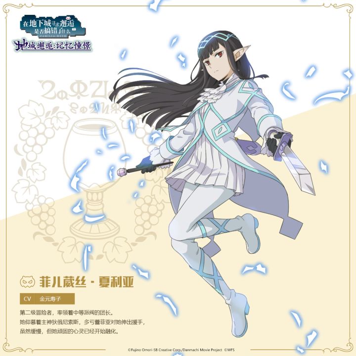 大家好,我是您的冒险顾问埃伊娜。参加过《地城邂逅:记忆憧憬》手游首轮测试的冒险者们,是否还记得?测试期间上线了一个活动,名为【白巫女们的受难】。在那篇冒险谭中登场了一位黑发红瞳的女孩子,可能各位冒险者对她还有点陌生,那她到底是个什么来头呢?今天的【地错百科】要给大家介绍的人物正是这位少女——菲儿葳丝。========◆ 种族 ◆ 精灵◆ 眷族 ◆ 狄俄尼索斯眷族◆ 声优 ◆ 金元寿