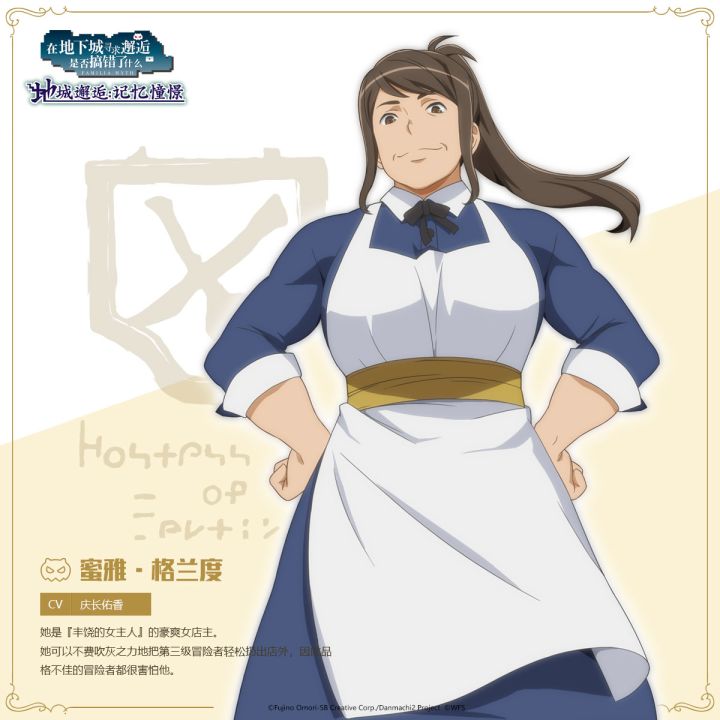 大家好,我是您的冒险顾问埃伊娜。随着时间的推移,天气也逐渐变冷。在寒冷的冬夜里,就不自觉地想让人去一个暖和的地方好好地饱餐一顿~!在欧拉丽中,“丰饶的女主人”可谓是人气最高的酒馆。大家最熟悉的阿妮雅和可萝伊,还有疾风精灵琉都在那边做服务生。而这家酒馆的店主也是个狠角色哦!她就是让大家都闻风丧胆的——蜜雅妈妈。========种族 ◆ 矮人眷族 ◆ 丰饶的女主人声优 ◆ 庆长佑