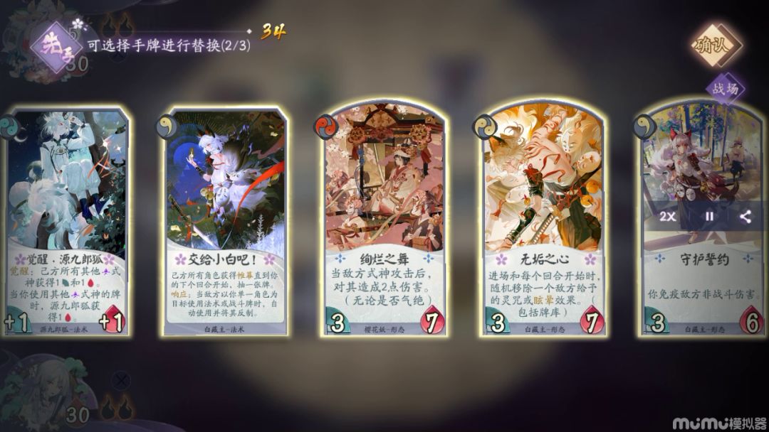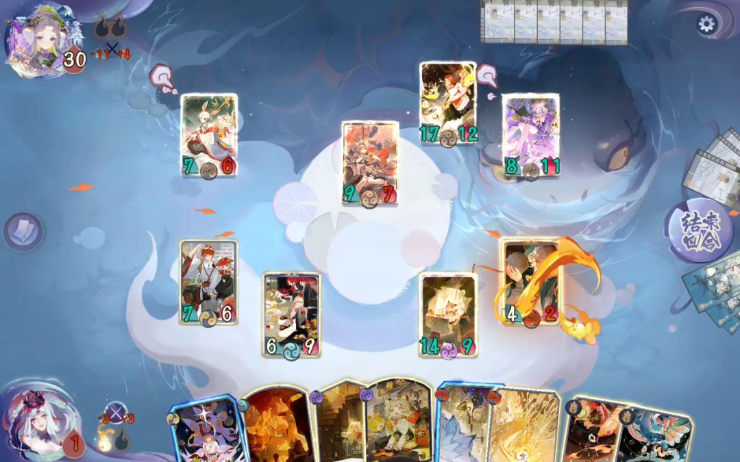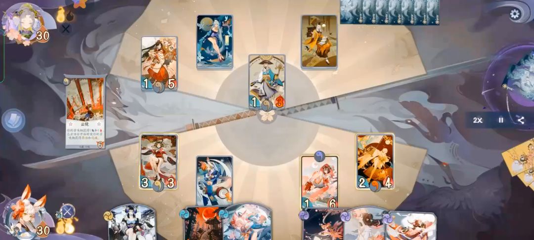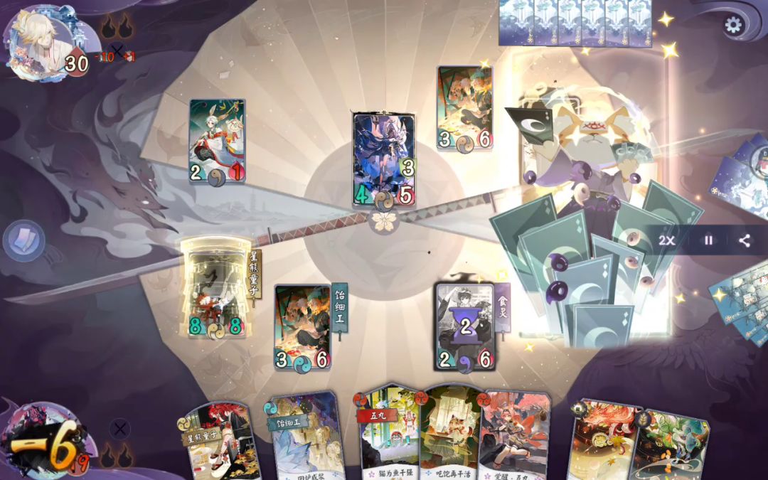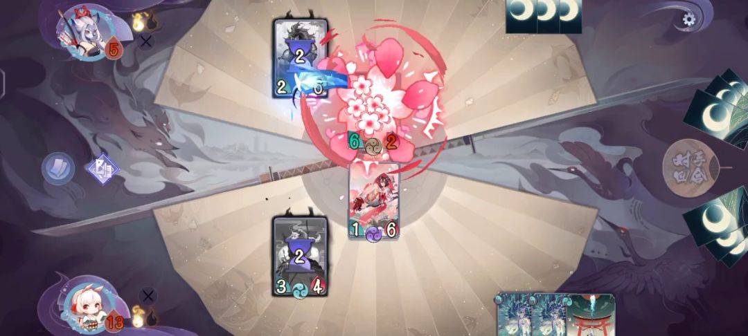 一、玩法思路及带卡问题。 由于桃花妖•落英(后续简称英桃)SSR大砍,中期节奏强度不够碾压,依赖于拖到三勾回天之翼斩杀。 1、桃花妖•落英。 式神定位。复活、找牌,对战力式神提供坚毅(1点减伤)。 廿(niàn)四风。定向找牌,起手可留。 花月夜。满编,趁早挂形态,能嫖一点收益是一点。 归风灼华。推荐带1,不推荐满编。 通常只作为骗解,方便拖入三勾,如果有一勾形态花月夜,不建议替换。 入场时有坚守