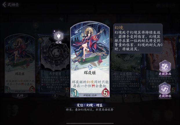 不愿随波逐流,你我遍都相同 大家好 我是百闻社/狸猫会成员 小果酱渣 今天给大家带来的是 【辉夜姬解析】 ★万金油,每个版本都能玩。 ★幻境队是很多新人的上手卡组,幻境玩完之后想玩其他卡组的话,辉夜姬可以利用一下。 ★下面的解析我脱离幻境体系,从单走思路来解析。 一.单卡解析 ①本体 1-5垃圾身材 ★一勾随便叠个幻境,二勾挂个幻境凑十血触发增强效果。并且新挂幻境会让辉夜姬幻境移到队伍幻境末尾。 ★