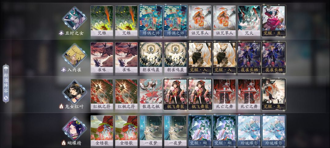 先亮配置 卡位比较死 咒火可以换一张一勾形态抢前期节奏 红叶二勾瞬发可以换一张爆破符 思路:由于没有紧那罗,红紫叠入夜值不是很快,开局优先留丑女入内雀红叶二勾形态, 蝴蝶精觉醒和知音漫客 ,前期先用入内雀卖 对面有强力解后的 卖掉红叶(正常情况对面优解红叶二勾)保丑女, 第一次升三勾如果有知音漫客点蝴蝶精抢节奏, 这个时候是最平滑的时期 ,可用一夜梦斩杀, 如果对面是情愿或者过牌这种后期卡组,