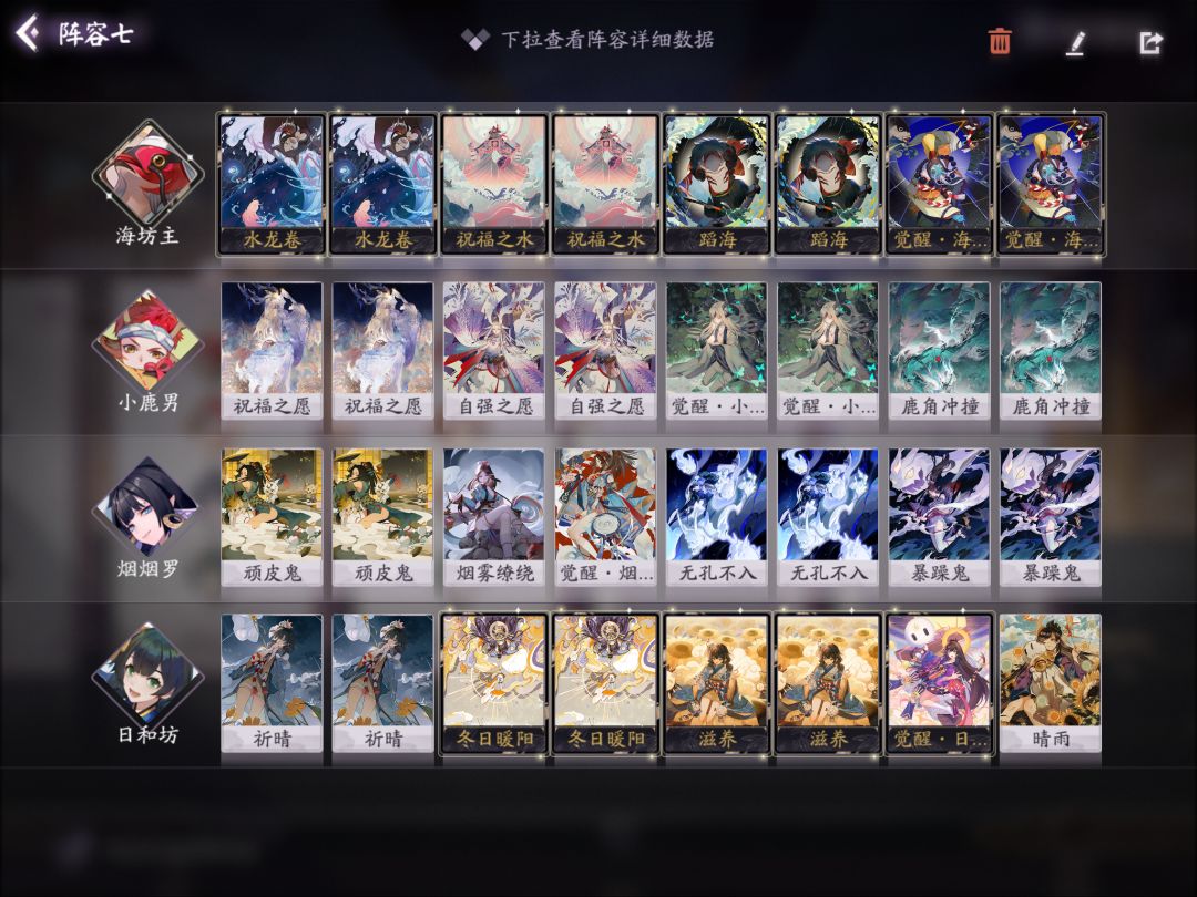 阵容名: 书翁 明心 (2) 闻世 (1) 万象之书 (2) 觉醒·书翁 (1) 墨染 (2) 青坊主 法界唯心 (1) 觉醒·青坊主 (1) 佛印 (2) 禅心 (2) 佛光 (2) 妖琴师 觉醒·神乐歌 (2) 觉醒·镇魂歌 (2) 疯魔琴心 (2) 余音 (2) 判官 墨笔夺魂 (2) 勾诀 (2) 无情 (1) 死之宣告 (2) 觉醒·判官 (1) 阵容码:MTAxXzQ5MDk4MTFf