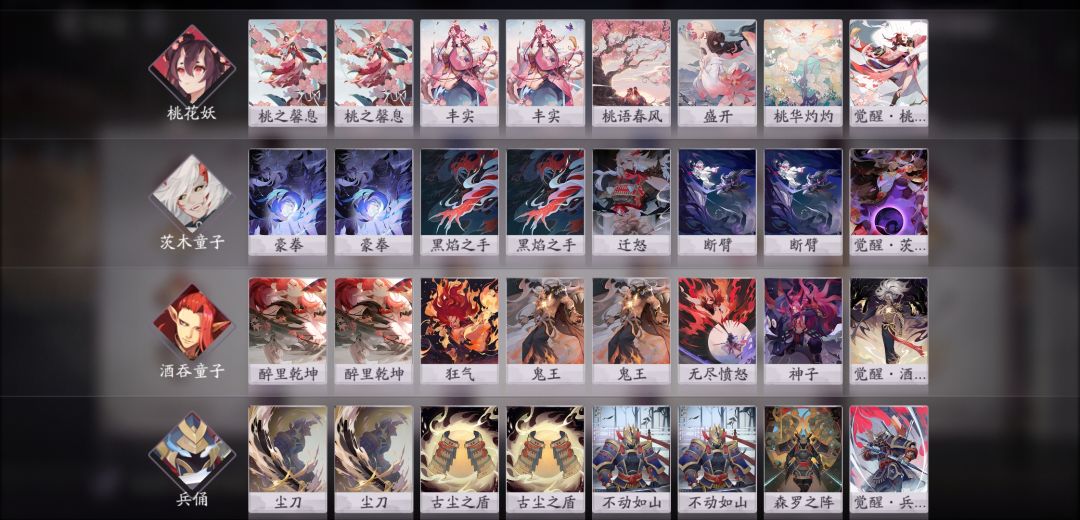哈哈,我又回来啦,今天给大家带来的攻略是我最近忽然想到了一套利用茨木童子、酒吞童子、兵俑三个核心输出加上一个万用奶妈桃花妖来组成了。 卡组构成 这只是根据我现有的卡组成了,大家如果有更好的卡可以换一换,我先说说核心思路。 阵容名:双童兵桃 桃花妖 桃之馨息 (2) 丰实 (2) 盛开 (1) 桃华灼灼 (1) 桃语春风 (1) 觉醒·桃花妖 (1) 茨木童子 迁怒 (1) 觉醒·茨木童子 (1)