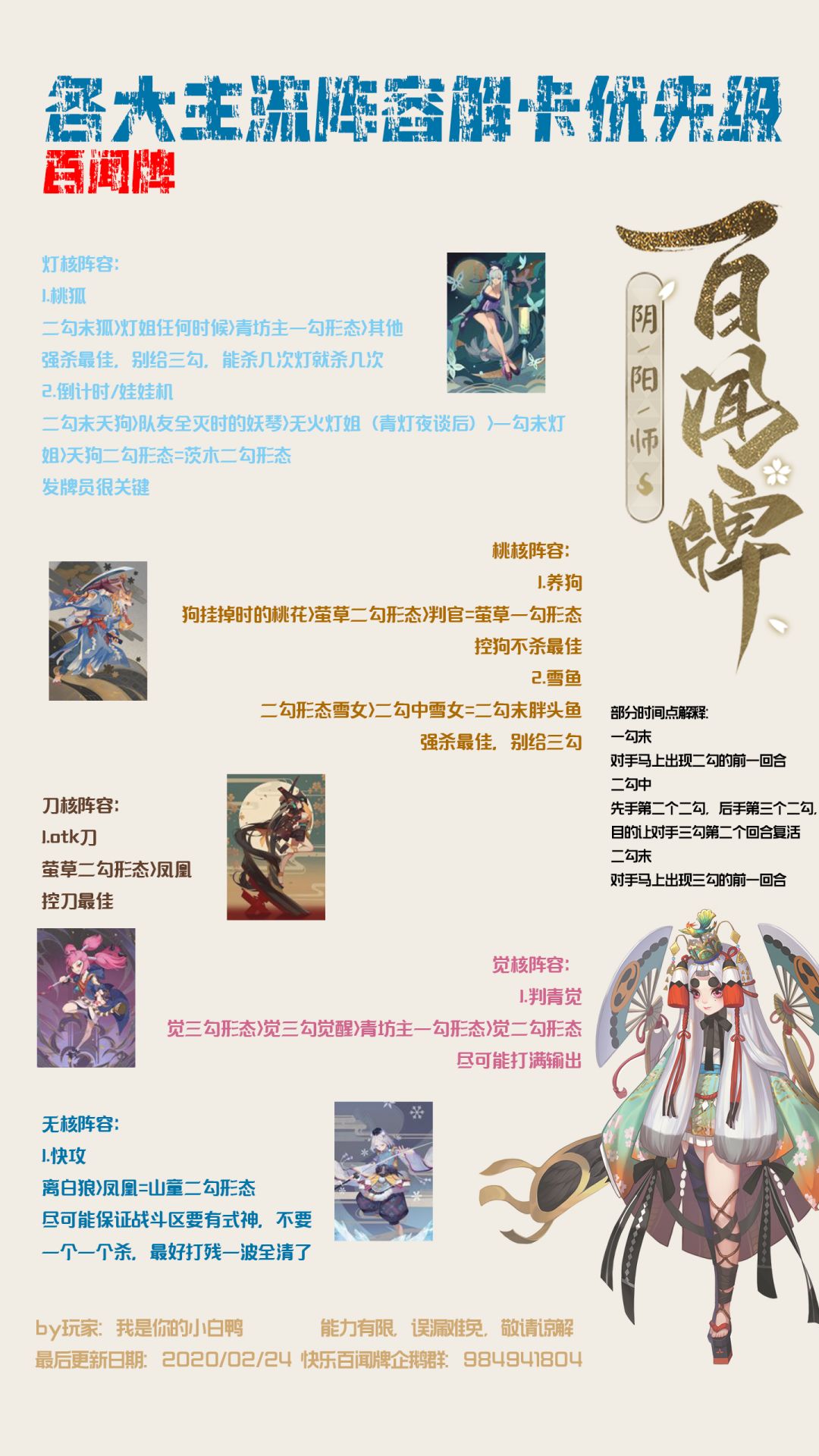 忘了是哪个主播曾经玩的(B站就那几个主播我居然忘了是谁,多多少少有点不尊重[表情_捂脸哭]) 备注:快攻,便宜,一勾留,找寻香一勾形态,天逆每一勾站场再交羽毛留战力,对面要是站不住就炸,天逆每一勾法术记得留一张,对局有奇效[表情_举手]#阴阳师百闻牌