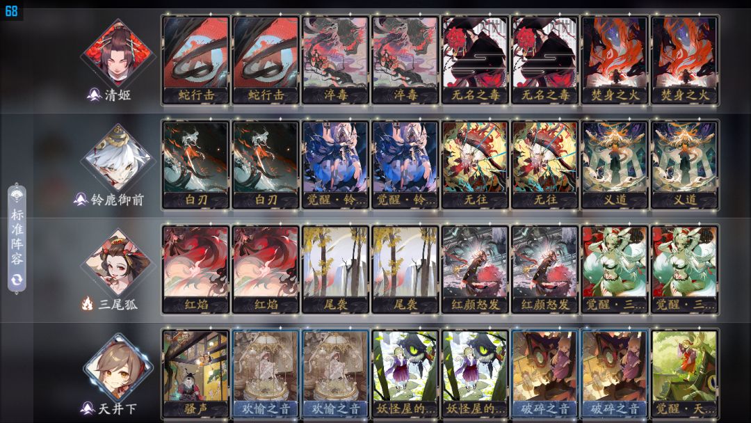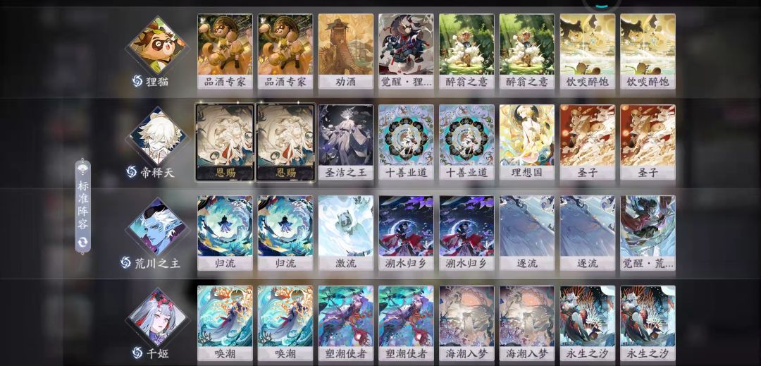 更新一波卡组推荐 主要方向是荒川,胡桃 (好像夹了个三尾狐) 花修三尾狐形态换成SSR形态 (没有济沧海是因为没抽到,有机会会更新其他几个式神滴)