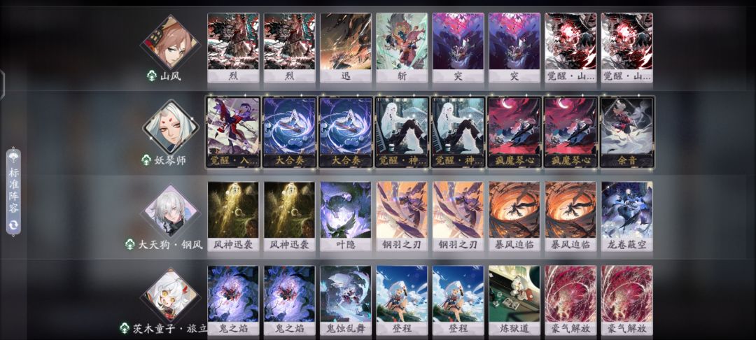 阵容名: 以津真天 流浪之羽 (1) 觉醒·以津真天 (1) 风之舞 (2) 金羽焕生 (2) 金风流羽 (2) 妖刀姬 一闪 (1) 禁锢之刀 (1) 不祥之刃 (2) 见切 (2) 战意 (2) 鸩 致命诱惑 (2) 鸩羽苏生 (2) 寂寥心象 (1) 毒蚀 (1) 觉醒·鸩 (2) 凤凰火 凤鸣 (2) 焚羽 (1) 凤火 (2) 炎舞 (1) 引燃 (2) 阵容码:MTAxXzU3MTg0
