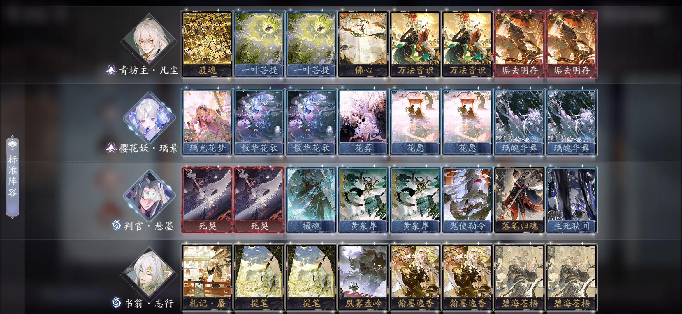 也是又来分享卡组了,这个赛季本来没想上名士的,玩这套上头了。 这套卡组大概是70的胜率上的名士,玩起来感觉不错,可以分享一下,趁机发发牢骚。 每个赛季我都能把宝压错,在体验服最不看好的就是羊,感觉缘结神最拽,所以给缘神合了两张金卡。结果就是他强绑定商店式神,单走根本就是[表情_丑竟己]结果如何,也不用我多说,反正又当了一个赛季的赔钱货。 这个赛季的整体环境,我感觉非常的不好,小白带动了一大批阴间阵