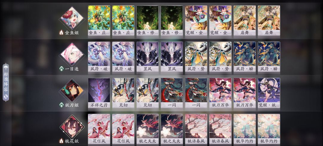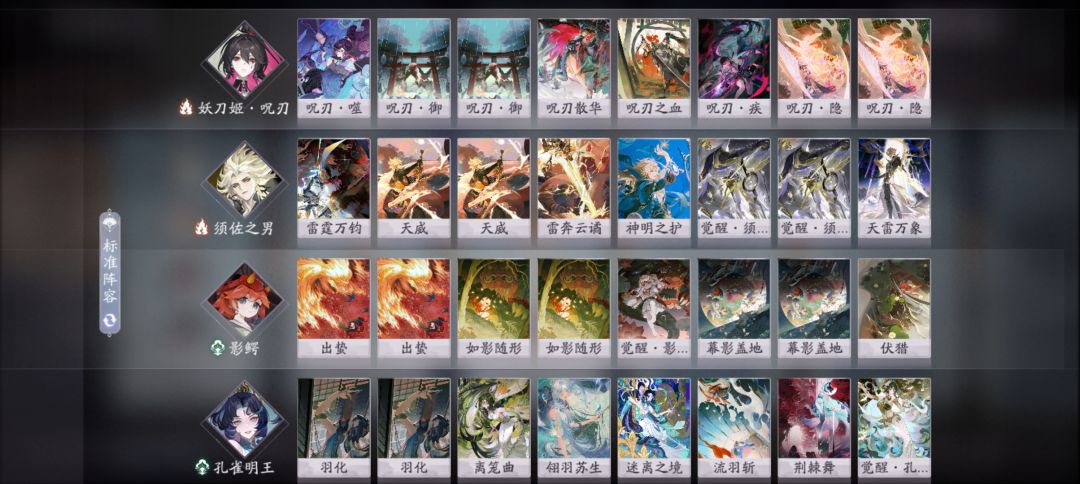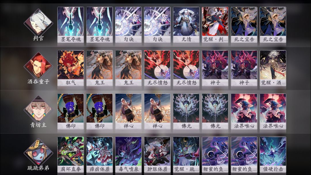 7段用这套卡组拿到7连成就,正在冲击8段中 最强之处:没有克星,面对任何套路都可以打 (贴脸有酒吞跳弟扛刀,远程有判官青坊主毒奶) 造价:非常低,没有一张ssr卡牌 卡牌布置:大家看图跟游戏中对照,我就不打了 打法思路: 这套卡牌操作难度较高,主体思路为抗压到3勾,3勾后利用青坊主毒奶敌方角色,同时触发青坊主+判官觉醒的被动从而实现一次秒一片,酒吞为敌方前排施压,跳弟觉醒来挨打(觉醒跳弟强到爆炸)