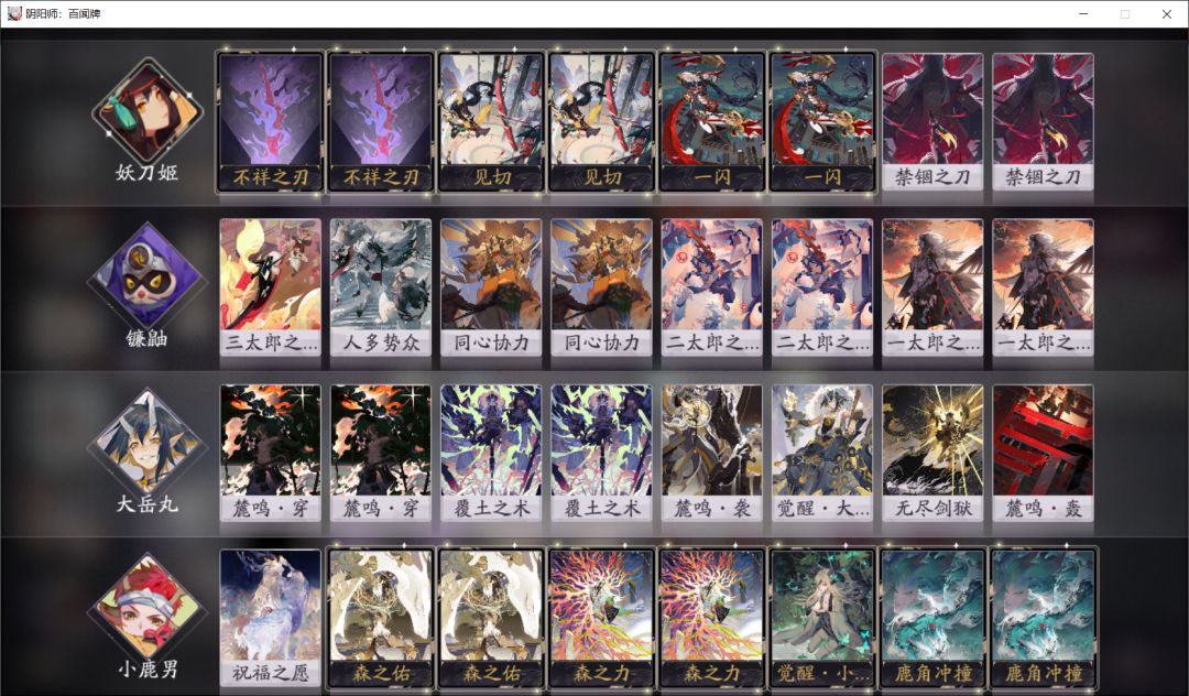直接上图,相较于小程序的卡组做了优化带卡,其实弑杀冲动和觉醒都是只带一张就够了的,因为沉底就是血亏。面灵气可以觉醒换妒心或者战斗牌换成妒心。(觉醒纯纯满分好卡) 这套卡有不少的斩杀手段,基本不太缺资源,解场能力不错,而且相当好玩,带上猎魂可以应对版本热门的毒队,只要毒队没有天胡是可以打的。 缺点是一勾很弱,没有鬼童丸卡就是纯废物,中期最好别大崩,打天胡快攻很难受,其他基本正常点就能爆杀,中期很稳定