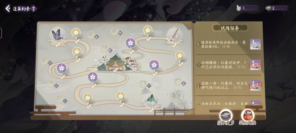 新号有4项目福利:启航预组,结伴修习,5日登录领自选式神,20个秘闻卷自选礼盒、自选极(SSR)卡礼盒。 老号回归就看撕SR卡能不能凑2万御札(125张SR),2SSR+10SR大部分廉价卡组的造价。 一、启航预组。有两种选法。 1.1、选幻境。 有一张土御门胡桃的SSR,土御门胡桃强度依赖于SSR。新式神总能出那么一个超模的核心值得上一个辅助去拉复活。 5日登录领自选式神里拿辉夜姬、荒,骨女就偏