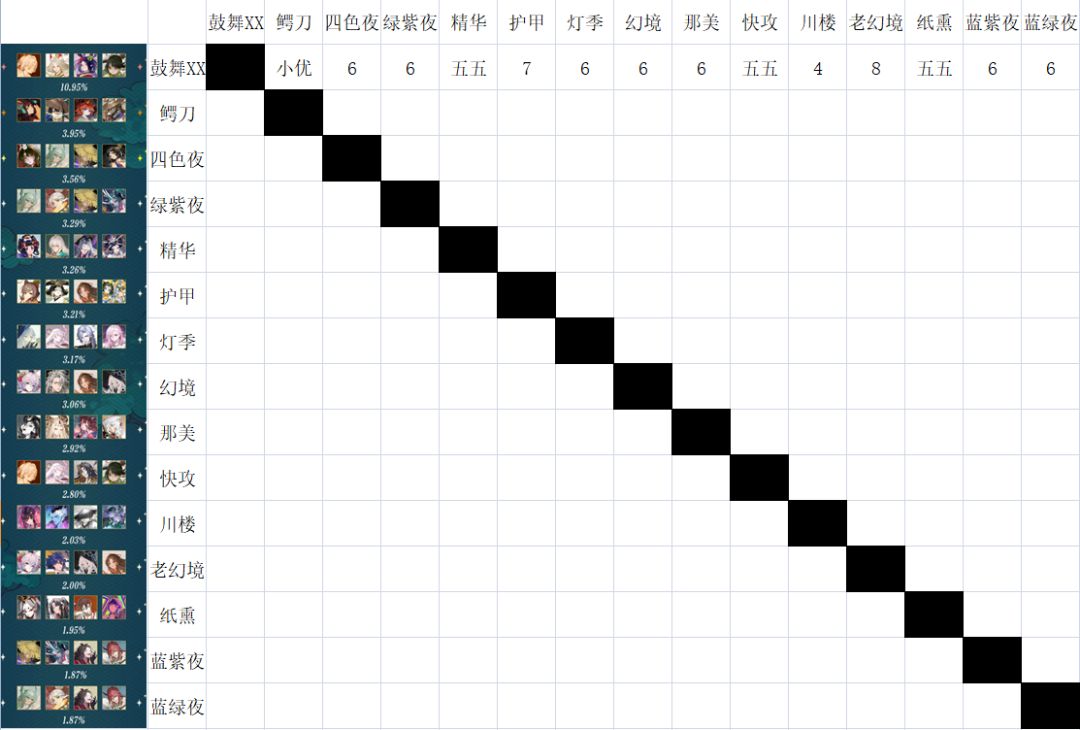 [表情_嫌弃]睡醒发现中国队比赛顺延,由它去吧。 声明:“黑”,商店黑贫修脚皮,烬天玉藻前腰斩,当然可以喷,只是策划与“不打牌”的企鹅猪猡对比,还是有点人样的,只是做的极其差劲。 一、先黑一下这个“说明”本体。 1、8段-大名士环境出场排名前十合计46.4%。 同比, 24年3月7日平衡性调整说明前十是38.8%,顶顶大名的底层逻辑琅琊子、灵连、战力、鳄刀。 24年10月第四周周报前十是38.08