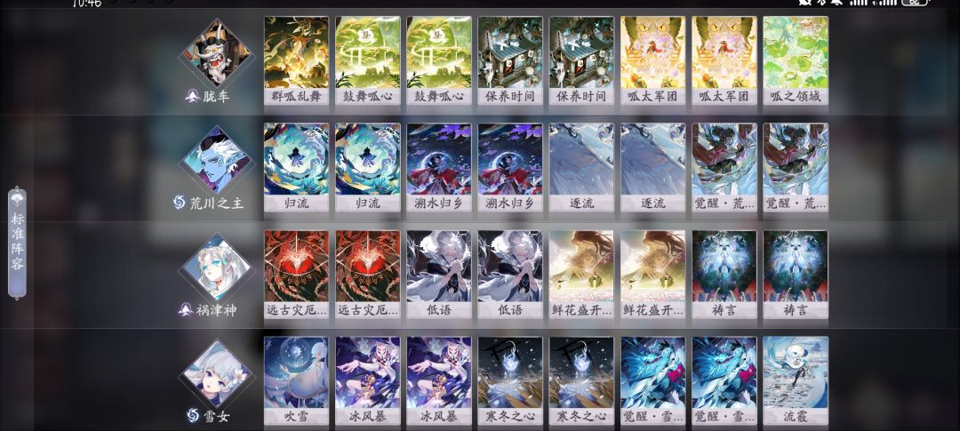 胧车和祸津神的联动就无需多言了。 在目前天梯普遍慢速的情况下,这一套先后手都挺舒服的。 主要是为什么用荒川和雪女: ①提供鬼火:荒川一勾sr能帮你给下一回合加一点鬼火,在升二勾的回合尤其有用避免鬼火不足难以抉择的情况。 ②抽卡更舒适:荒川ssr的占卜效果能让你看到牌库顶的牌,不想要的可以直接沉底。二勾的r卡可以占卜1后抽张卡,也是非常舒适。 ③克制胧车:现在挺多人都喜欢带个胧车,无脑的站场让我也一