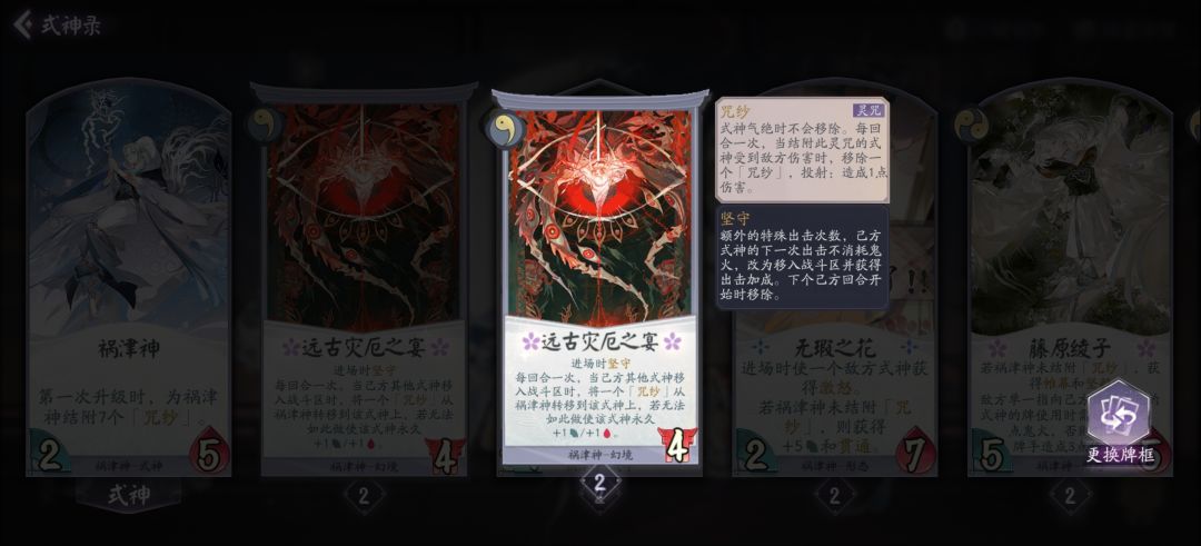 本人为娱乐玩家,正式服段位不高,名士一段,以下内容仅为试玩2h感受,如有错误欢迎指出 1.祸津加标追月,用追月一勾法术清祸津灵咒,再搭配祸津的幻境和一勾形态,key牌上手可以1-2战场7-7贯通,二勾陪追月形态打输出,由于与卡组羁绊问题建议陪其他灵咒式神与祸津二勾形态搭配 2螭璃蜃气楼三尾狐加苍叶快攻单走,九尾提供稳定弃牌手段,蜃气楼提供牌源,陪苍叶是为了螭璃觉醒苍叶牌,配合二勾形态可以有略微的压