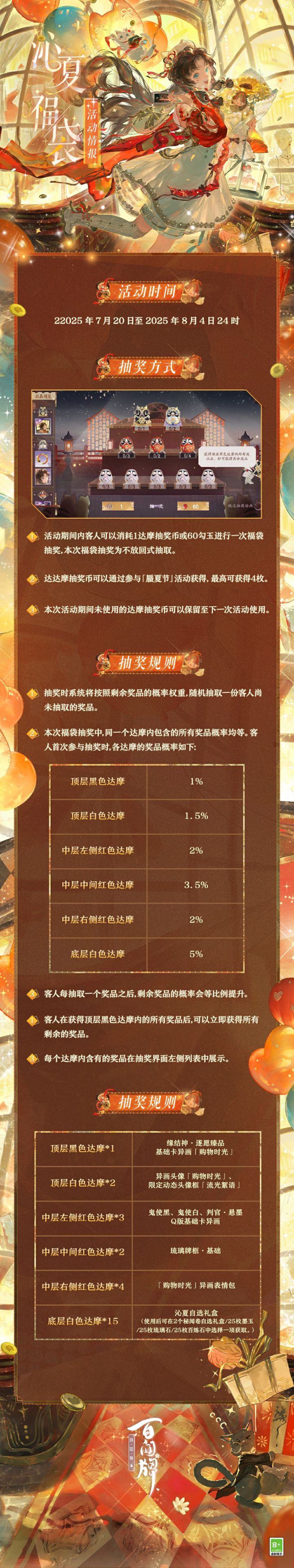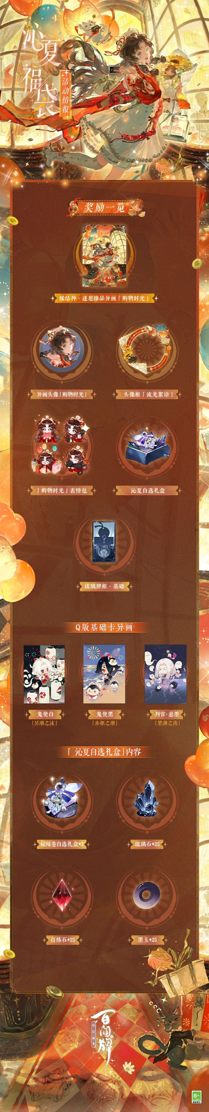 沁夏福袋异画头像「购物时光」、头像框「流光絮语」动态展示送达! 瞧这挂坠的光泽,比夜空的星光还要闪耀!还有这用金线刺绣的裙子,华贵挺阔有质感,看起来就是很高级的面料!要不先试穿一下吧?……(嗅嗅)好香的味道!是甜品店的蛋糕吗,好像也很好吃的样子!!! “多美妙的缘分呀!嘿嘿~”——什么,你们说被人困在橱窗里了吗!?不要紧张,我马上救大家出来! 〓沁夏福袋活动即将上线〓 沁夏福袋抽奖活动将于7月20