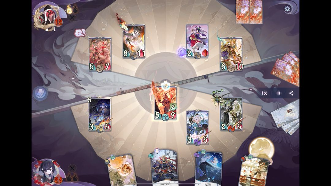 灯光穿透了百年尘埃, 记忆构筑的舞台随之摇曳, 这场违背常理的会面已临近时限, 他们任踏着过往的碎片不断飘旋…… 身影闪烁,无声凝噎 这一抹幽紫色的魅影, 不得不退回破碎的混沌镜面, 而乐曲的终章, 只剩下无尽的温柔与执念。 #阴阳师百闻牌