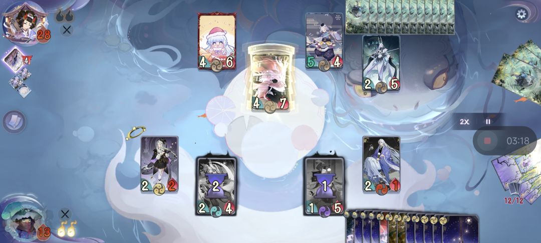 我建议你试试追月,书翁那套璇斩杀速度比带这个快很多,这个没那么好齐卡,太慢了,而且如果牌不齐,追月二勾还有吞火坑对面节奏你这套说璇最快二勾二启动,我是信的,但是追月书翁那套璇几乎是必定二勾二,三启动我直击快攻已经被这样创死很多次了,二勾一压到个位数,对面二勾二就斩了然后如果要改的话,书翁可以改灵海蝶,增加抗快,排位有遇到这样带的,但是感觉也一般,因为抽的慢,大名凤组实战的直击快攻打璇,我是五五开输的情况大概有这几种。1,对面天胡二勾一斩,打不过。2,对面正常二勾二三斩,我卡手没牌斩杀,被征子站下来了。3,没追猎上手去击杀璇大人,牌不够,二勾一没斩,对面二勾二直接被璇大人创飞了
