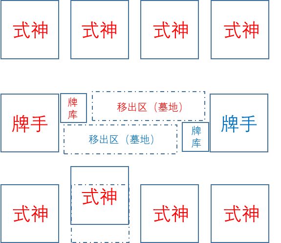 移出区可重叠放置也可排列放置,便于双方算牌。牌手卡垫位于右侧是因为卡垫设计,右侧便于操作。整个战场不会超过80cm×80cm,一般的桌面就可以操作。参考阅读百闻牌桌游化大师规则1.0:https://www.taptap.com/topic/18463319卡垫及各种标示3.0:https://www.taptap.com/topic/18509091