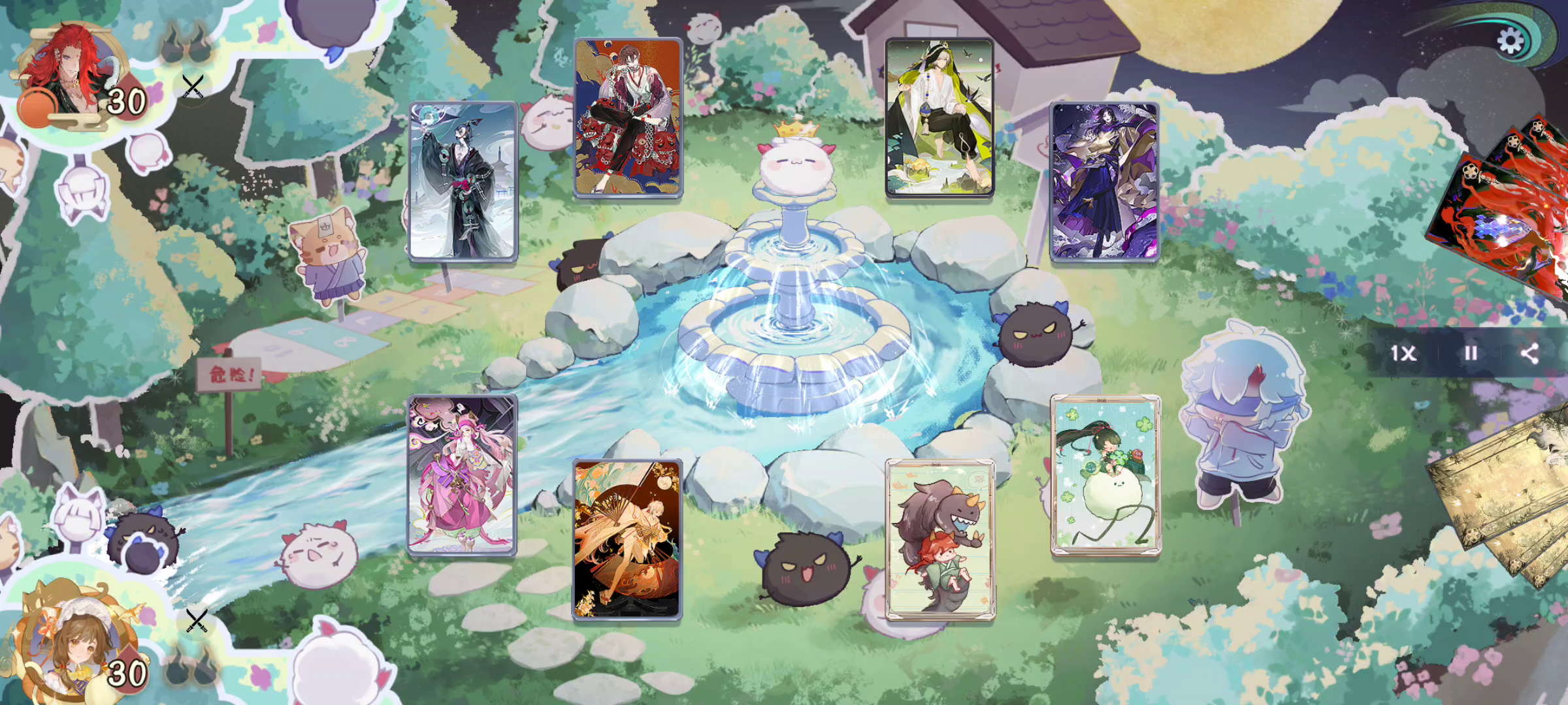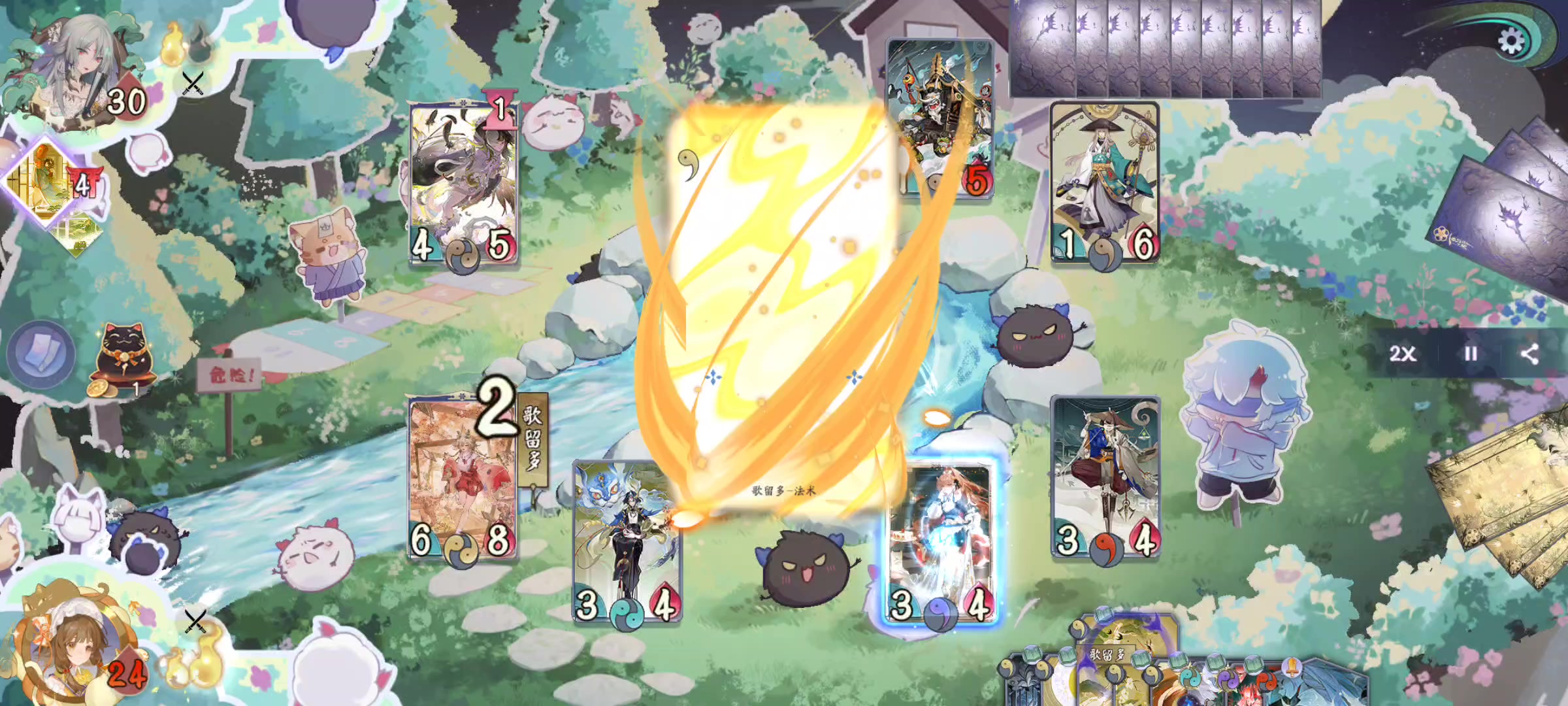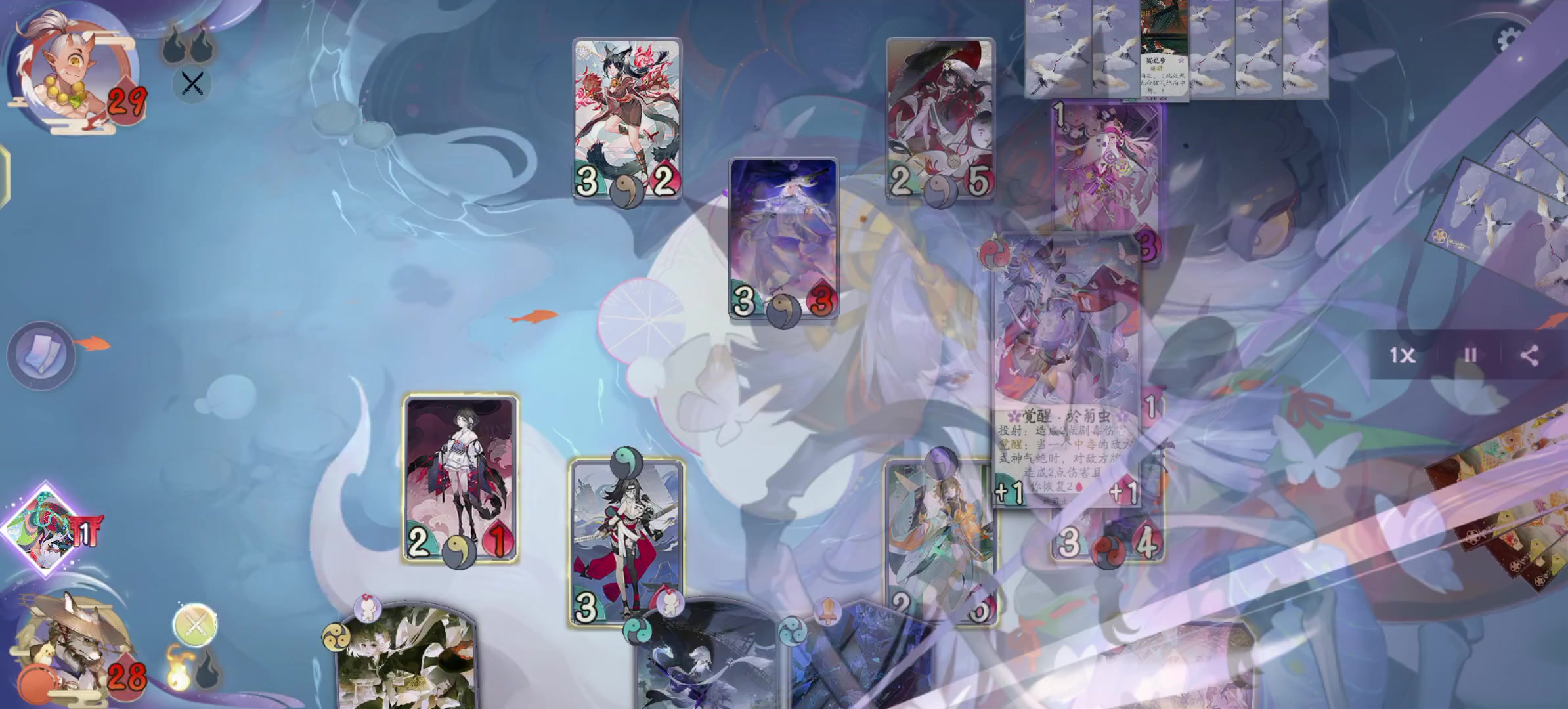 蝶影翩跹,昔日浮现 于幻梦中静谧绽绽放的花朵 此刻随风将芬芳四散 她俯身拾起散落的花札, 定格其中的灿烂芳华, 也是时光封存的絮语与笑泪。 #阴阳师百闻牌