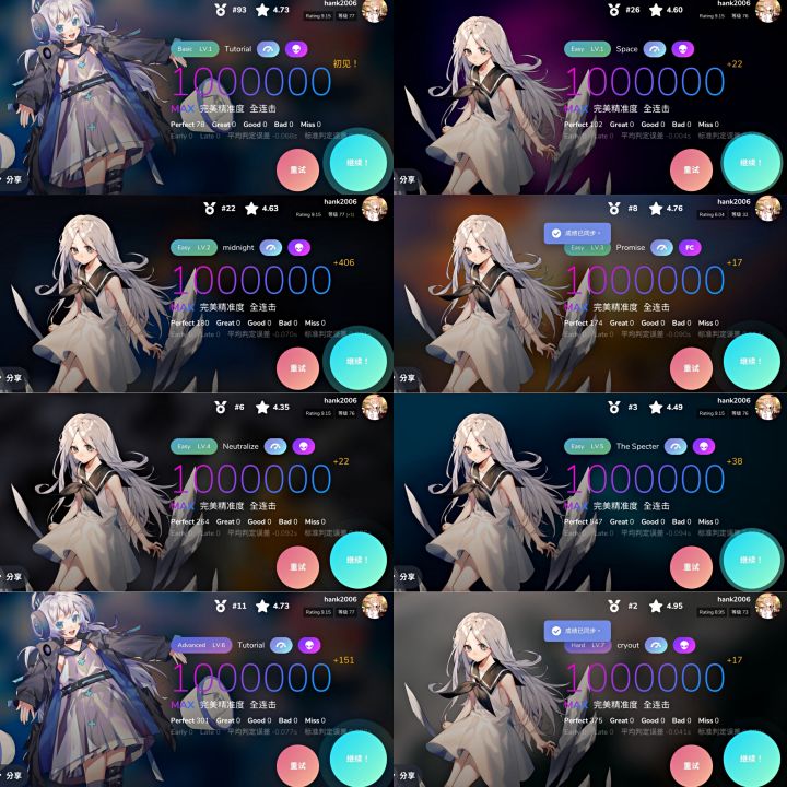 前几天榜三的位置还被一位六段大佬给抢了,我试了十几遍也没能夺回来,只能失魂落魄地回到梦开始的地方——训练模式。去年十一月底我曾说过要用心去刷低等级的关卡,于是我就照做了。结果前后断断续续花两个小时,居然把训练模式所有Easy关卡和Sayaka的角色关卡都收了?