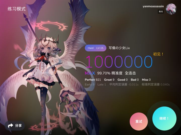 顺带一提,我以平均94.5的准度过了六段,感觉没那么难,比五段的时候好多了。