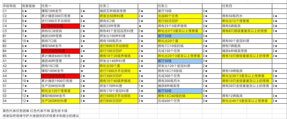 目录: 18.08.31[搬]C1~S4厨师评价任务 18.08.31[搬]旧版本1-25级升级任务 18.08.31[搬]高收益菜单 18.09.01[搬]149种料理的烹饪时间表 [原创]新版本料理的皇冠配方 [原创]新版本怪物组合形状 [原创]新版本旧料理的新皇冠配方 [原创]三种黑暗属性与预估收益等四项的关系 [搬]旧版本全皇冠配方总汇 [搬]特殊任务 ---------------