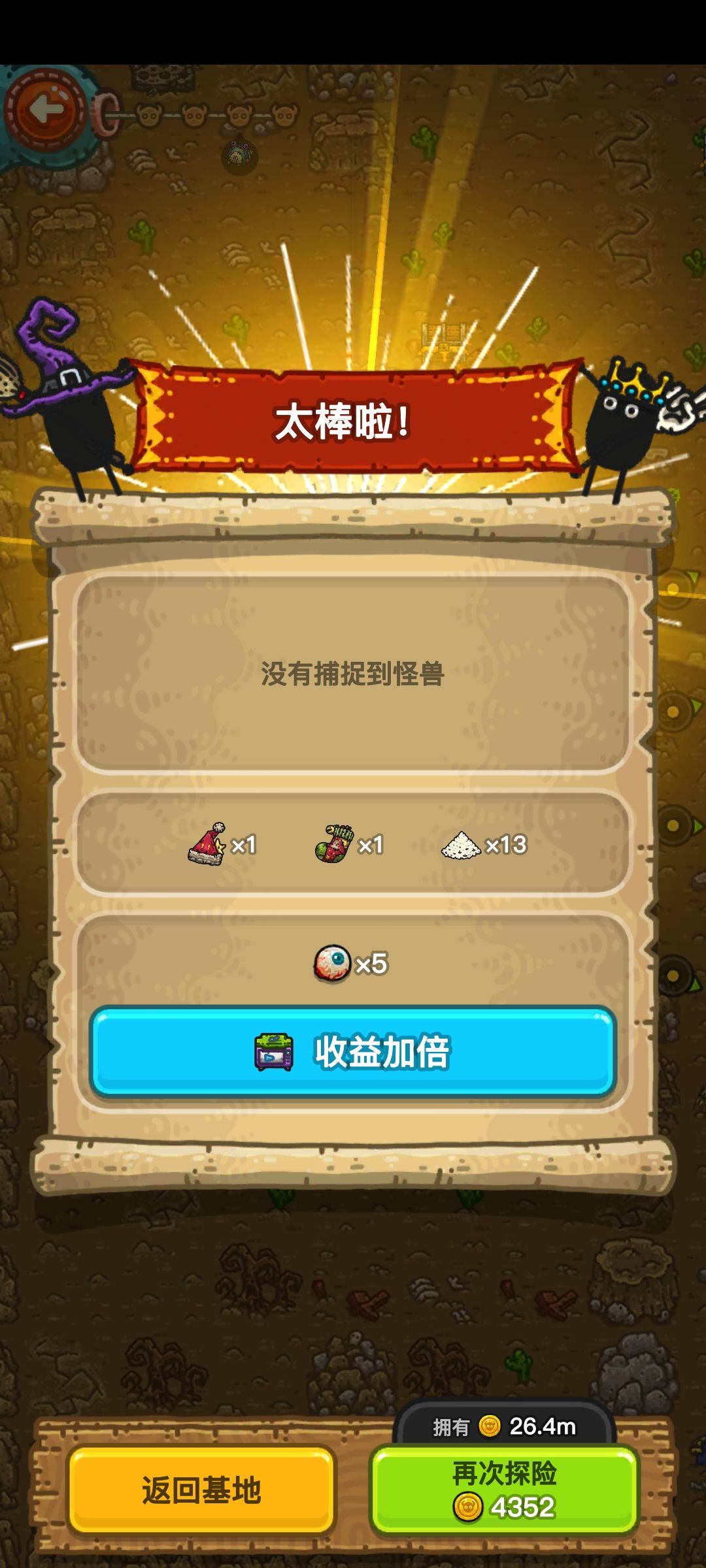 游戏判定是完成一次探索就可以拿一个帽子,所以自动探索8小时给5个,4小时给三个,一小时给一个,其他每日活动完成一轮给10个,一天最多40,开包也会有一些,但总体来说7天最多500个 剩下1000个想要在今年就拿到房子装饰的话就只能靠药水买或者手动肝了,因为游戏判定只要你抓到怪就算完成一次探索,我们就可以在第一张图用圣诞树反复刷,进去抓一个就退,顺便还能刷一下袜子