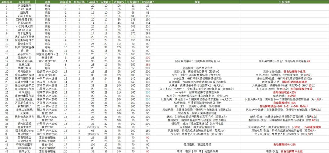 所有坐骑的获得方式和技能