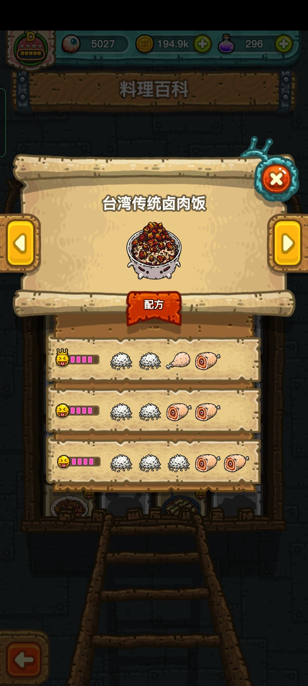 所有料理皇冠配方表格