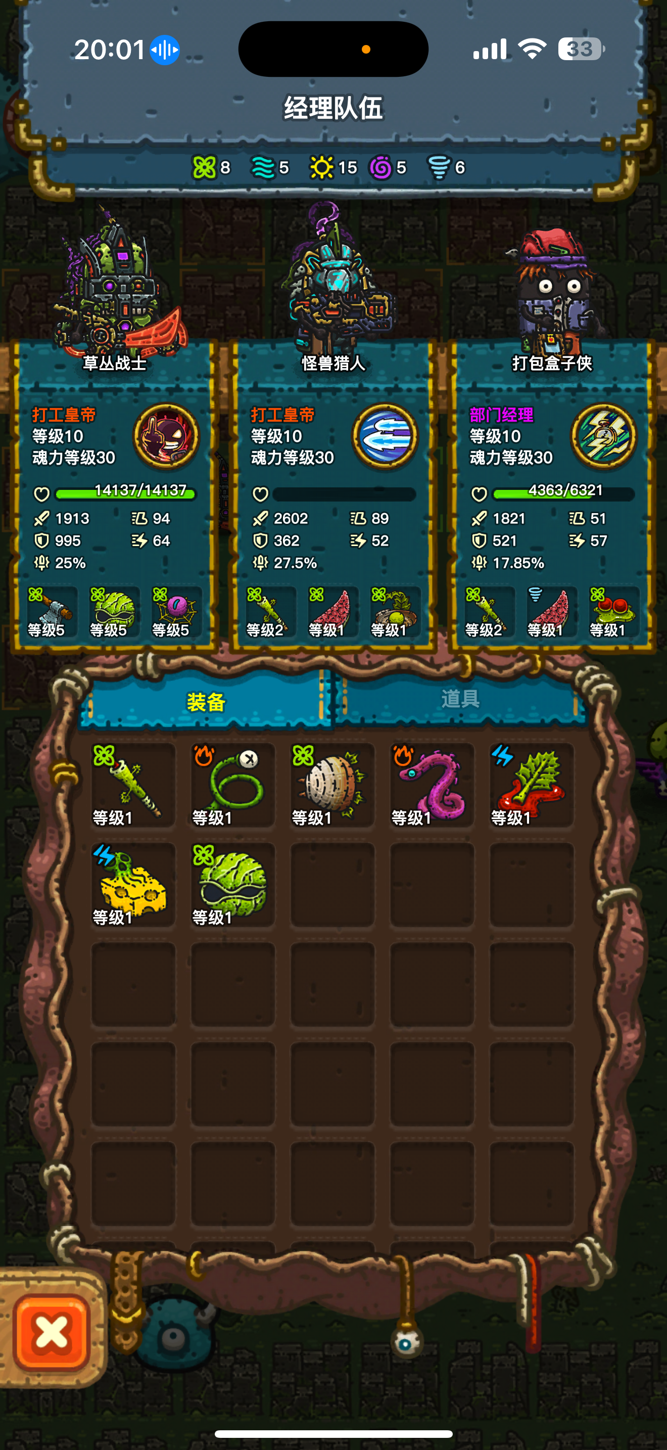记录一下草丛战士单通图九50层,没有跳关,纯靠反击就硬打,a一刀回7000血,天赋装备如下,猎人从三十几关一直躺着没起来,打包侠也是纯摆设。