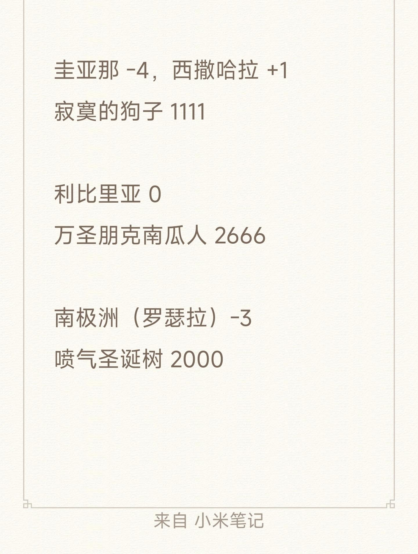 圣诞岛(基里巴斯)-南瓜人霍巴特(澳大利亚)-狮子巴黎(法国)-狗子圣多明各(多米尼加共和国)-窝窝鸡塔伊奥哈(法属波利尼西亚)-玫瑰坐骑购买顺序推荐贴https://www.taptap.cn/moment/591720026298385366?utm_medium=share&utm_source=copy&shar...⚠️修改时区办法➡️https://www.taptap.c