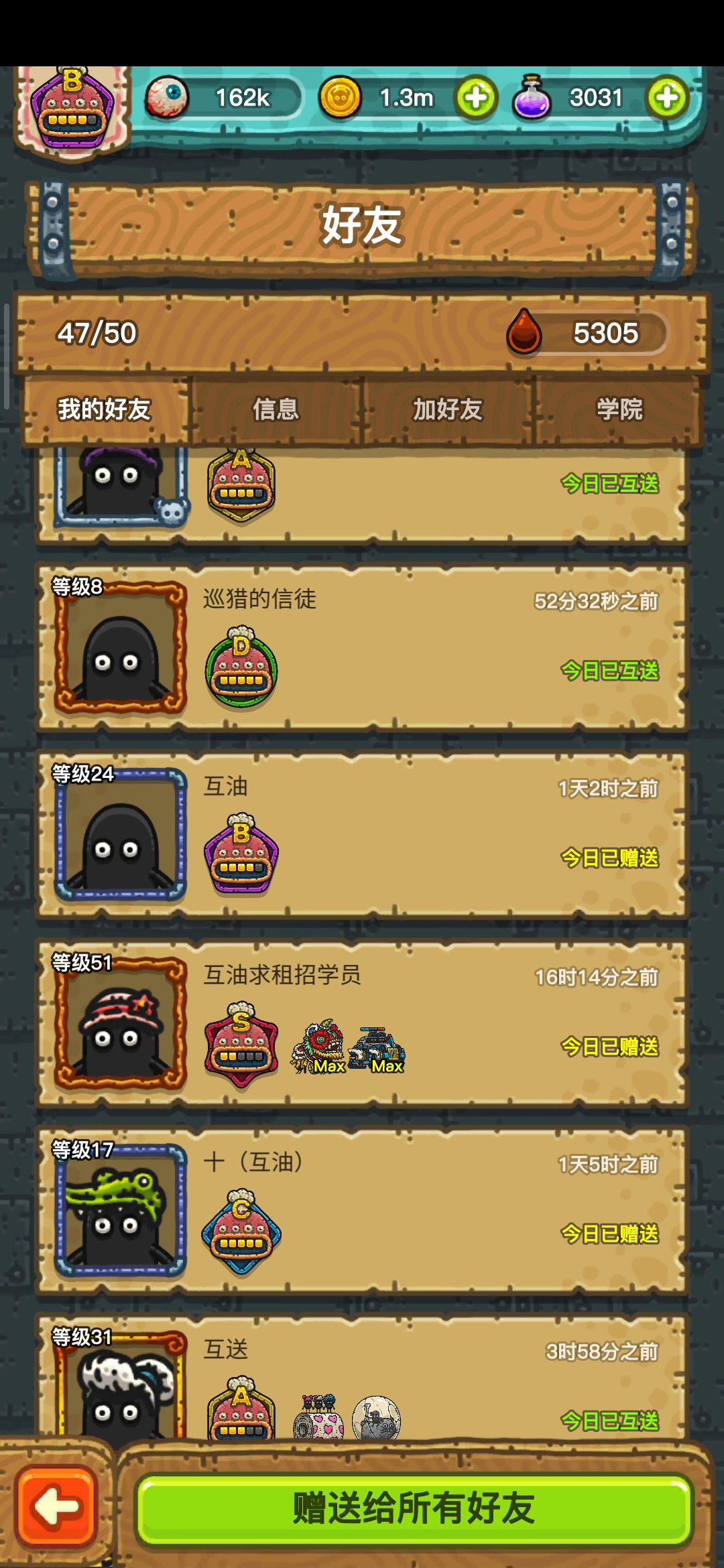 一天以上不送的别来找我了 这几天忙 让死人在我列表活了五六天互送酱油 互加好友每天100点对你我都有好处 死人请绕道!